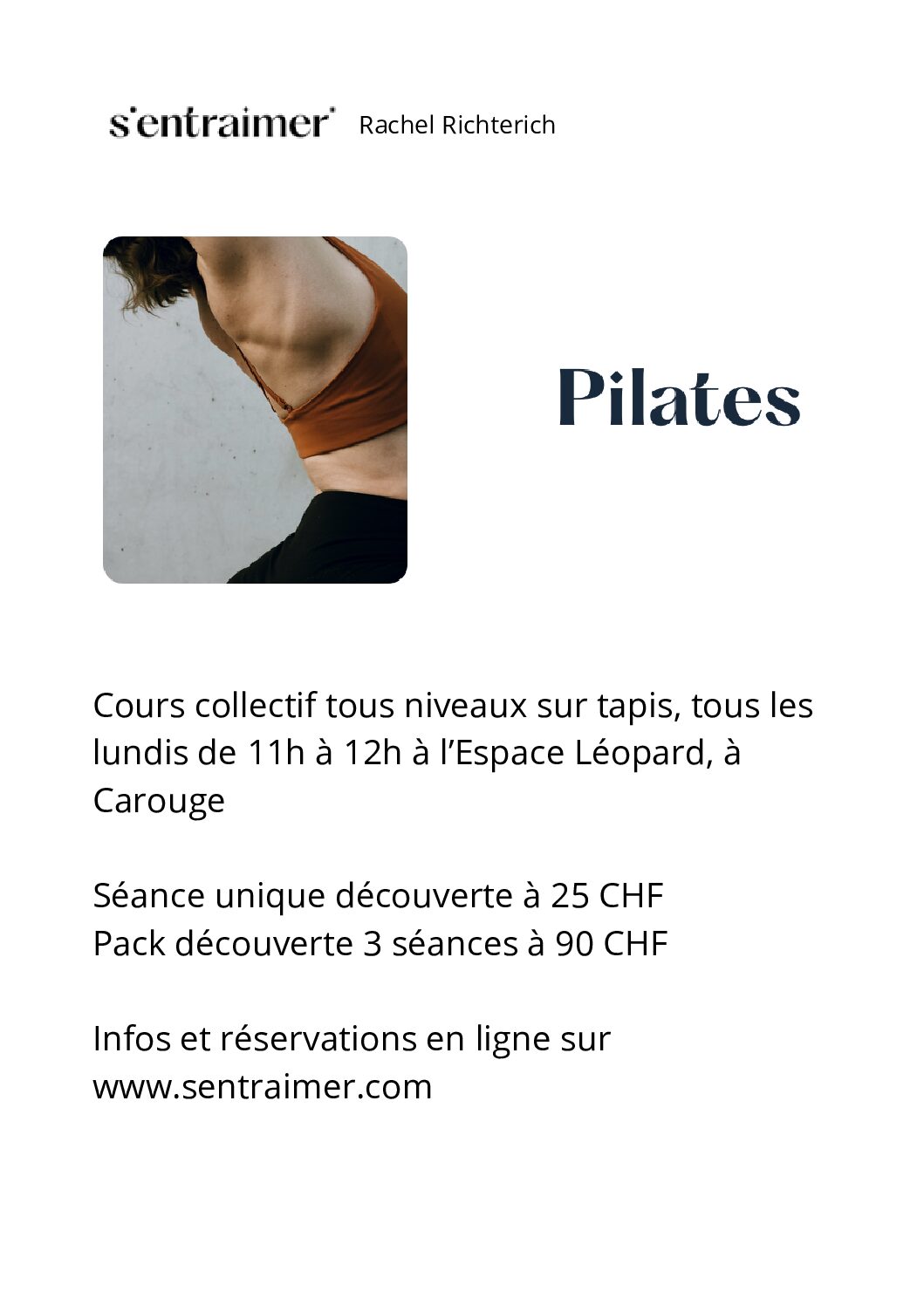 Abonnement 10 séances, 380 chf – tarif réduit* 340 chf (valable 4 mois)